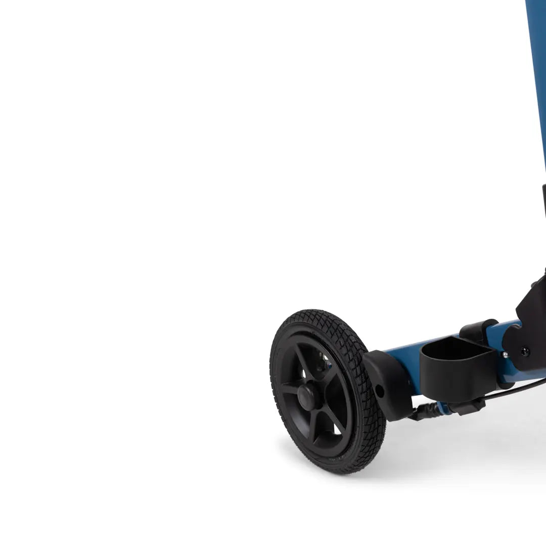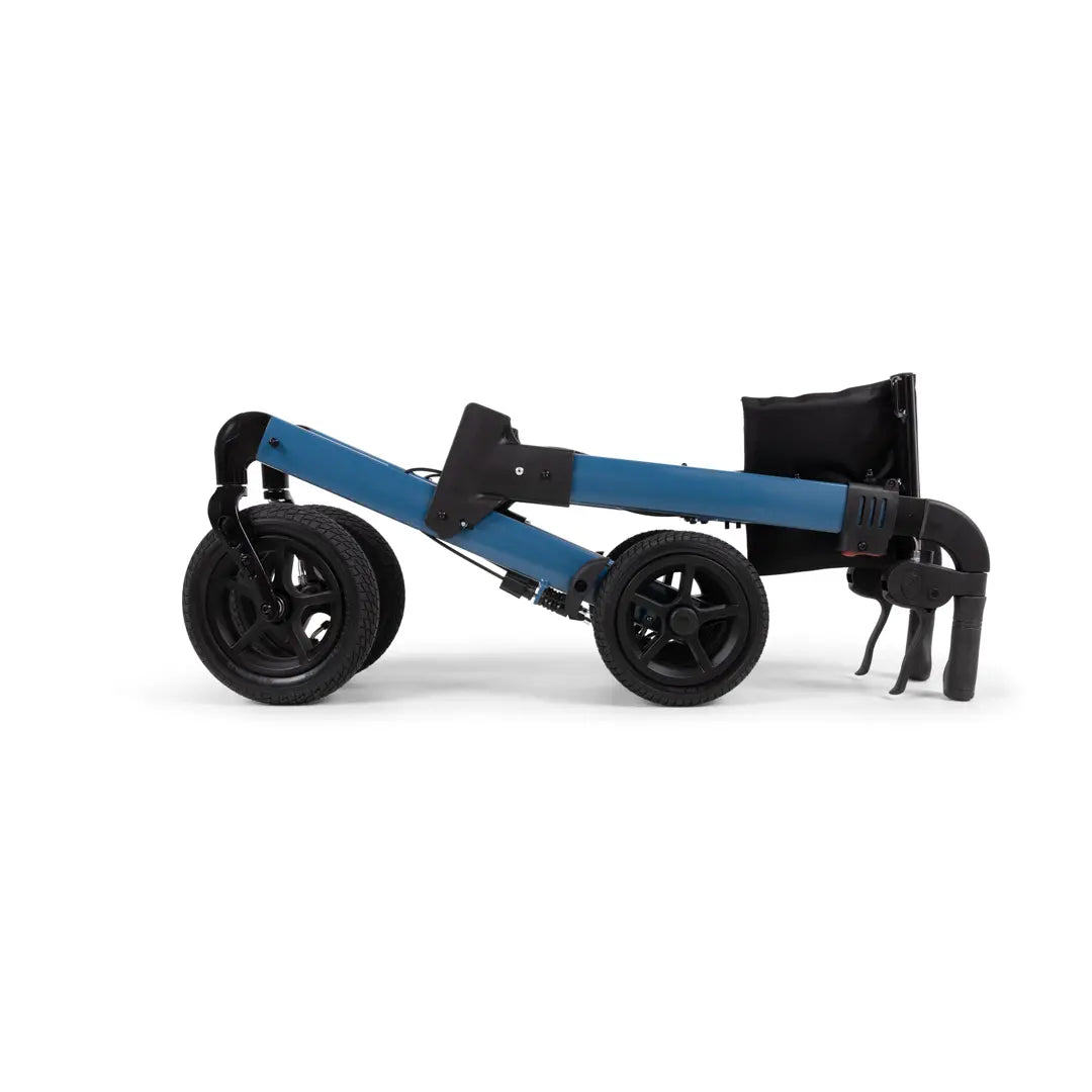 Wat deze rollator bijzonder maakt, is dat hij dubbel opvouwbaar is en is voorzien van luchtbanden — een combinatie die, zeker in deze prijsklasse, vrijwel uniek is. Met twee eenvoudige handelingen vouwt u de rollator op; dit kost slechts enkele seconden. In opgevouwen toestand past de rollator moeiteloos in vrijwel iedere kofferbak, waardoor het meenemen aanzienlijk eenvoudiger wordt. Bovendien is de rollator uitgerust met luchtbanden. Deze eigenschappen maken de rollator ideaal voor dagelijks gebruik op diverse ondergronden.